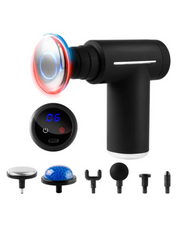 Pistola de percusión que ofrece una solución integral para aliviar tensiones musculares, mejorar la circulación y acelerar la recuperación física utilizando tecnología dual de frío y calor para personalizar la terapia según la necesidad. Opción de utilizar 6 diferentes cabezales para un tratamiento específico en músculos grandes, puntos gatillo, articulaciones y zonas sensibles. Pantalla digital para fácil visualización y control de temperatura e intensidad. Recargable con cargador tipo C.