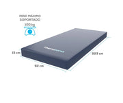 Adaptable a camas plegables gracias a su materiasl, capacidad de peso hasta 220 libras, material de espuma de alta densidad con cubierta de poliéster y base antideslizante, Cuenta con canaels de ventilzación que ayudan a disminuir el riesgo de formación de ulceras por presión.