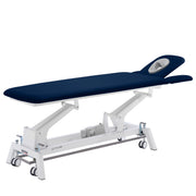 Camilla electrica de tratamiento avanzada y altamente funcional, de dos secciones + apoya brazos que integra tecnología moderna, incluyendo el sistema i-Control que permite regular la aultura de 50 a 105 cms de forma precisa y segura desde cualquier angulo de la camilla con un soporte sólido y seguro para los pacientes tanto en posición sentada como acostada. El soporte facial Ergomax maximiza el confort e higiene.