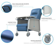Reclinable en 3 posiciones, según la necesidad del paciente, mesa prlegable para alimetación mejora circulacio elevando pies y piernas. Material de acero co cubierta de cuerina PVC. Capacidad de peso de 300 libras.